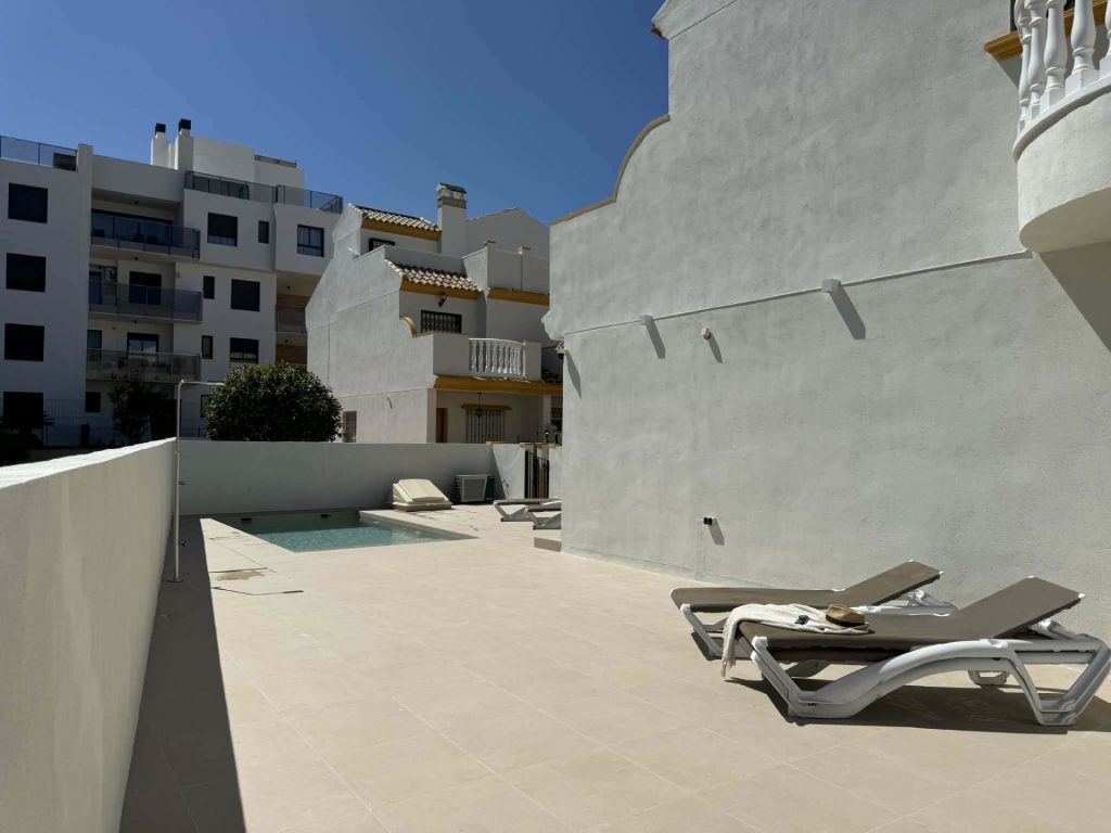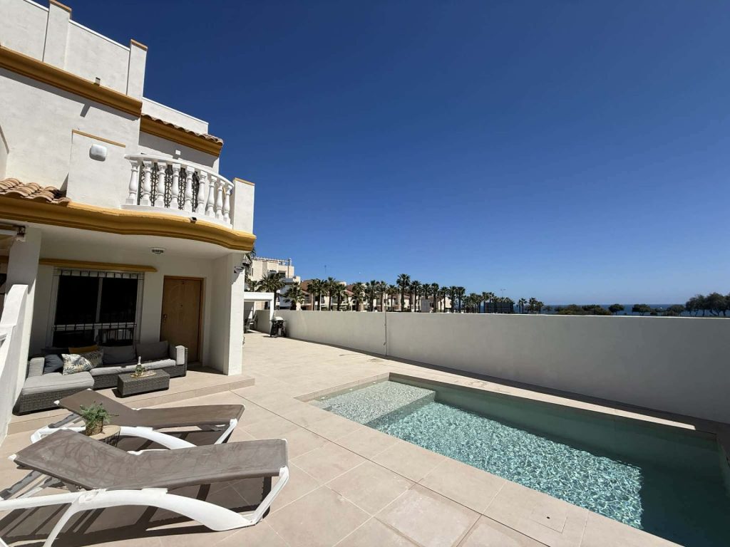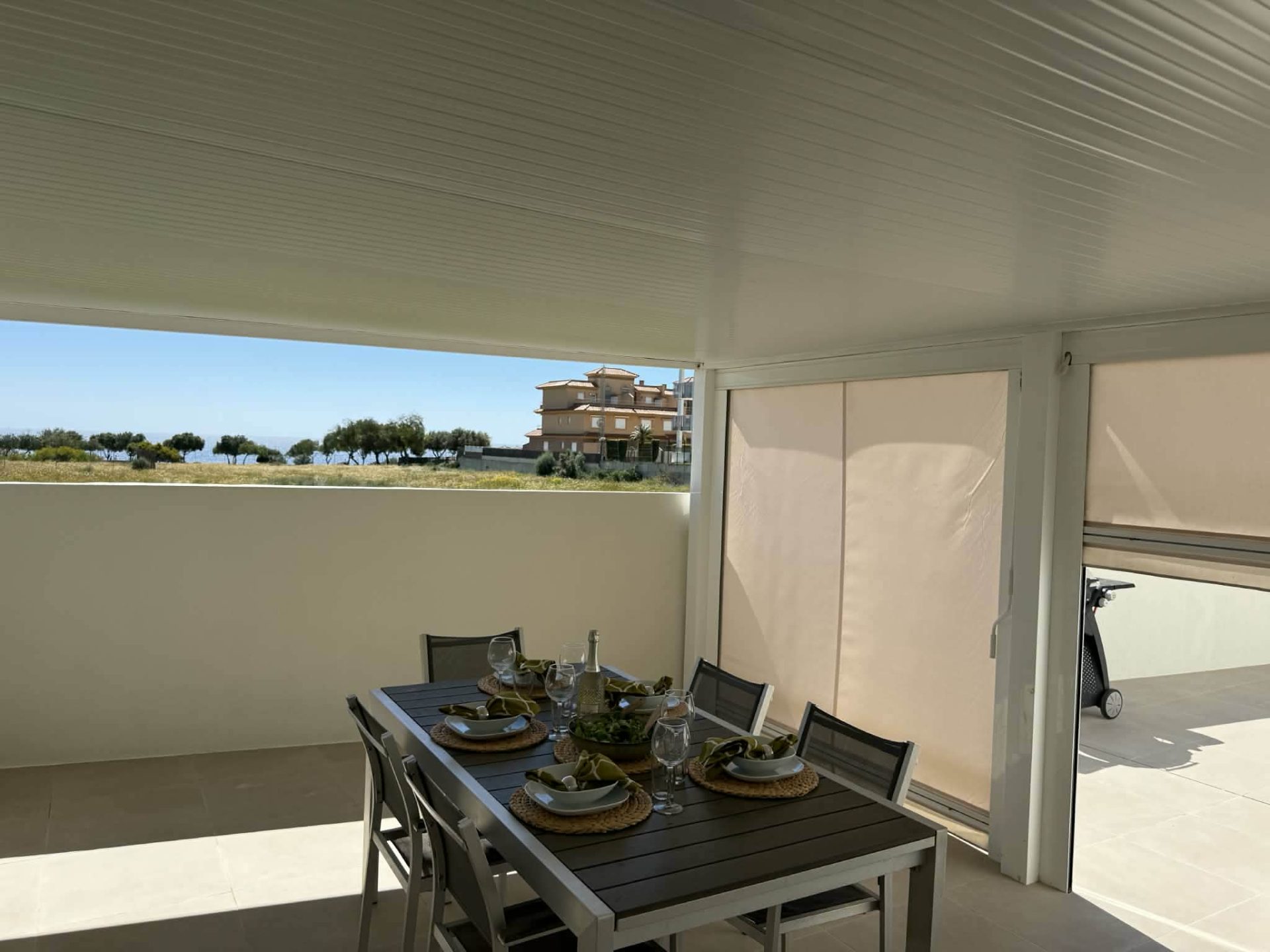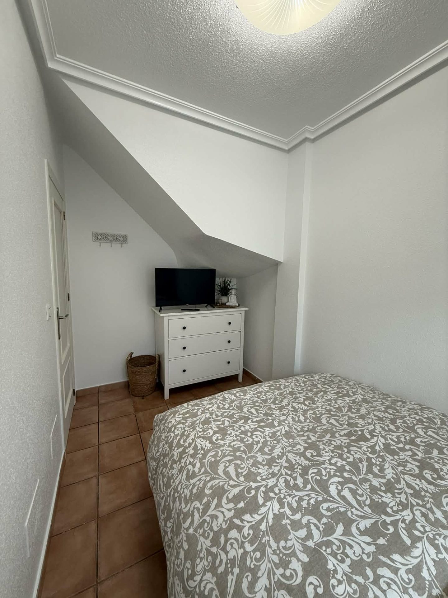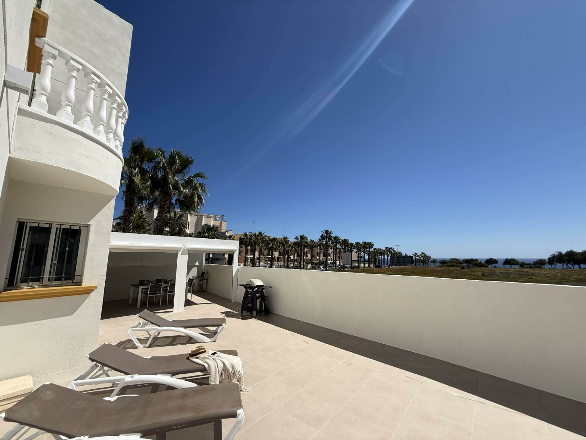 Þar er stækkanlegt borð, 8 stólar, 6 sólbekkir og frábær aðstaða til að njóta blíðunnar á Spáni, grilla góðan mat og sóla sig. Á annarri hæð eru suðursvalir út frá svefnherbergi með útsýni til sjávar og einnig litlar austursvalir með sjávarsýn frá ganginum.