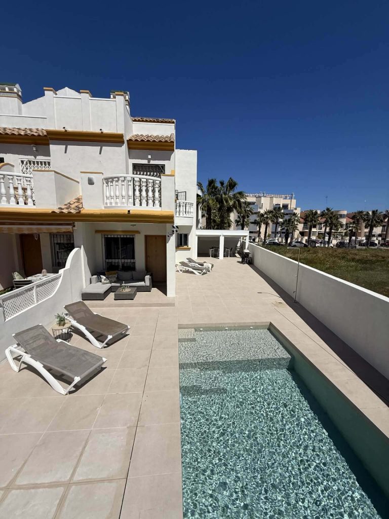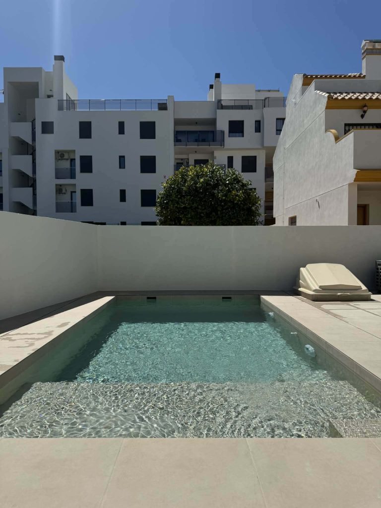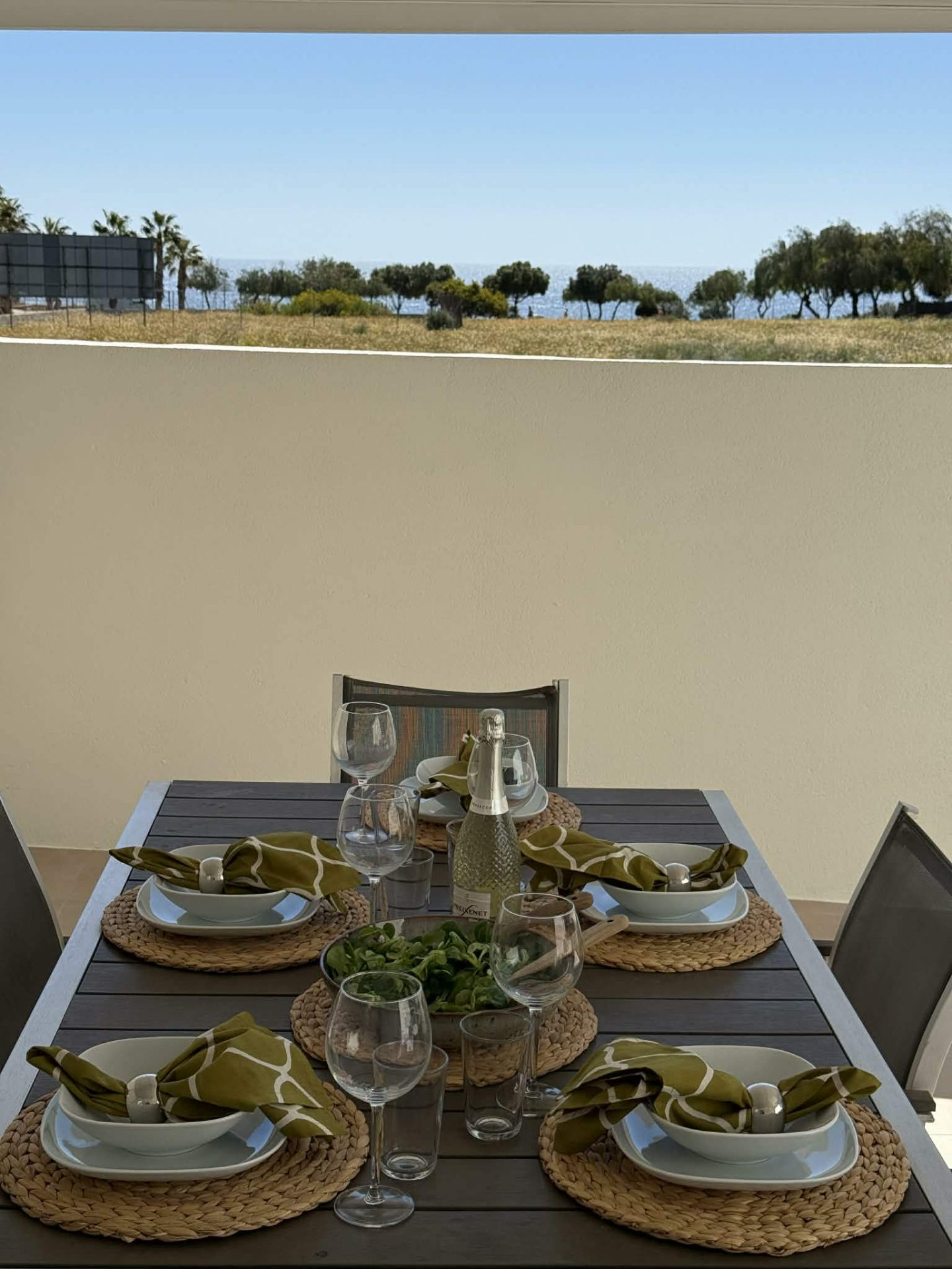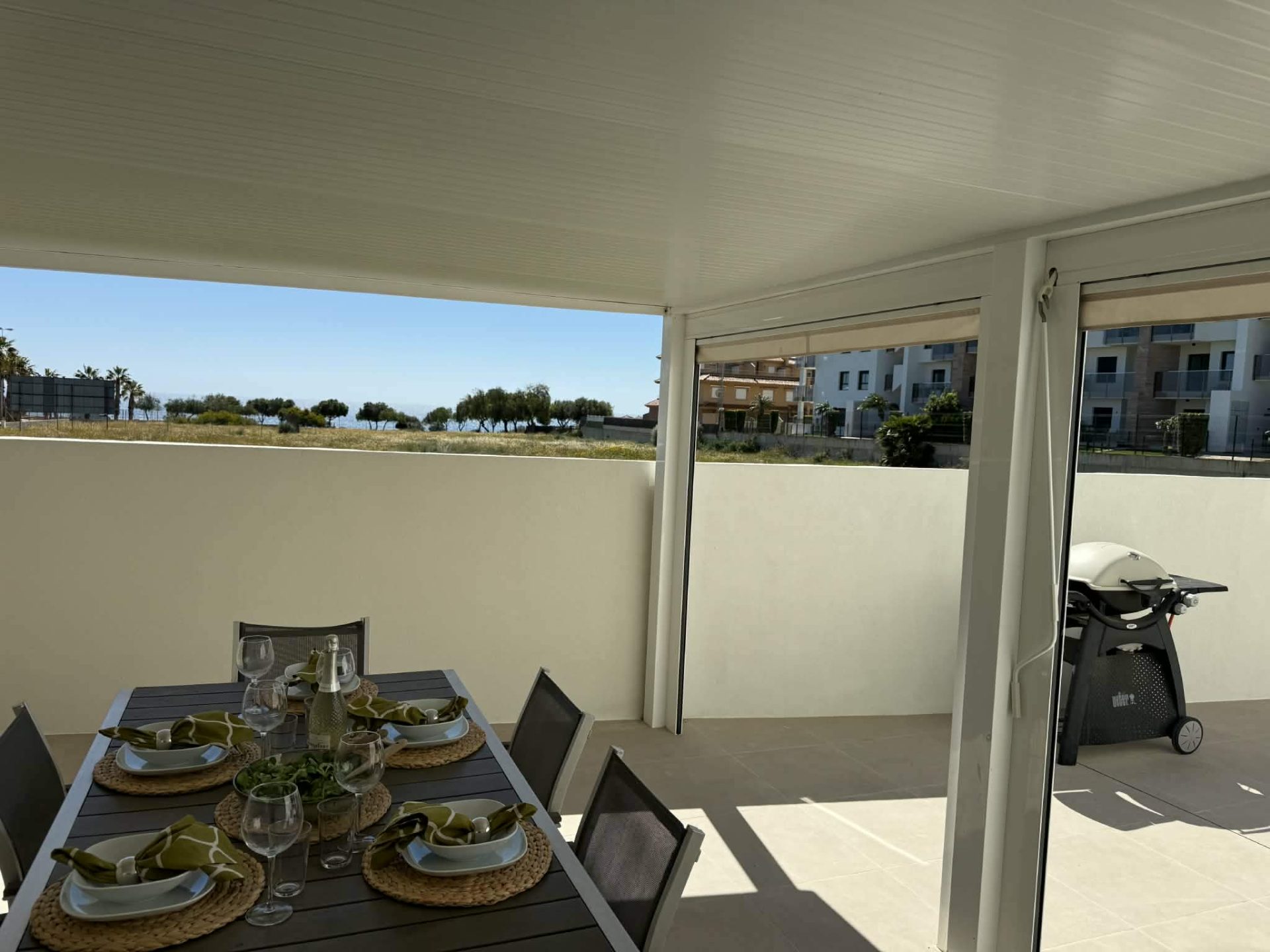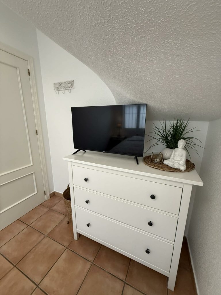 Þar er stækkanlegt borð, 8 stólar, 6 sólbekkir og frábær aðstaða til að njóta blíðunnar á Spáni, grilla góðan mat og sóla sig. Á annarri hæð eru suðursvalir út frá svefnherbergi með útsýni til sjávar og einnig litlar austursvalir með sjávarsýn frá ganginum.