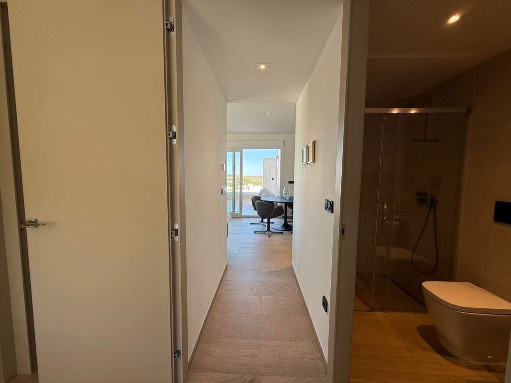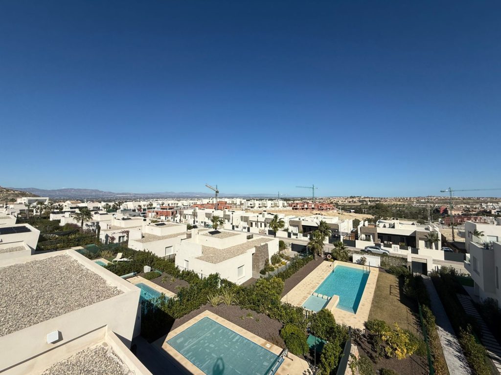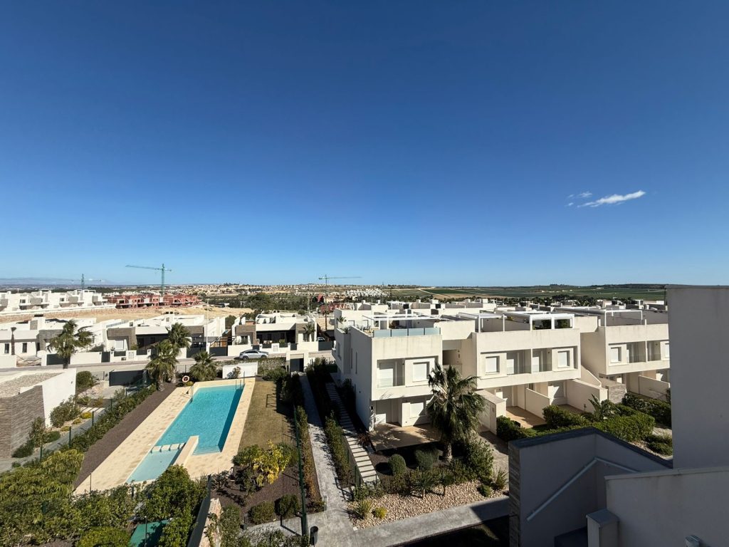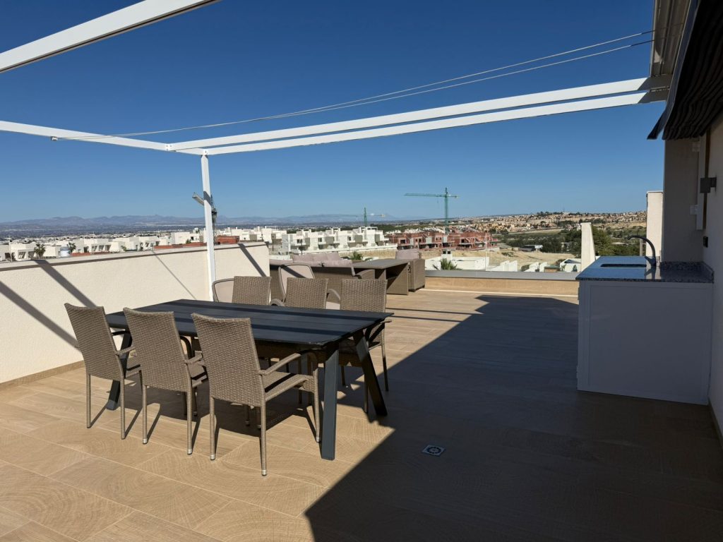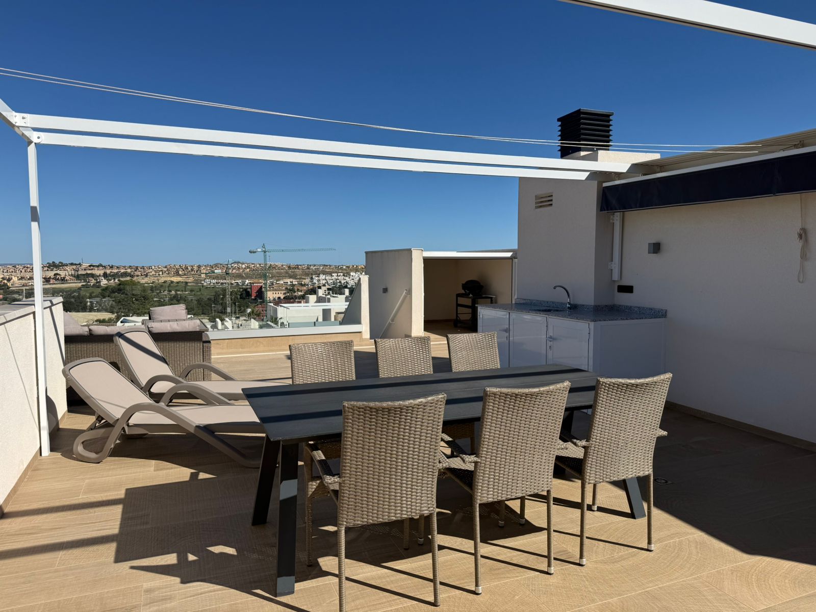 Efri sérhæð í Residential Grecia kjarnanum við La Finca golfvöllinn. Rúmgóðar svalir eru út frá stofu og þaðan er gengið upp á um þaksvalir með sófasetti, sólbekkjum, úti eldhúsi með gasgrilli og pergólu. Loftkæling/hitun er í allri íbúðinni, WiFi internet, snjallsjónvarp í stofu og allur aðbúnaður í eldhúsi mjög góður. Einkabílastæði í bílakjallara fylgir íbúðinni.