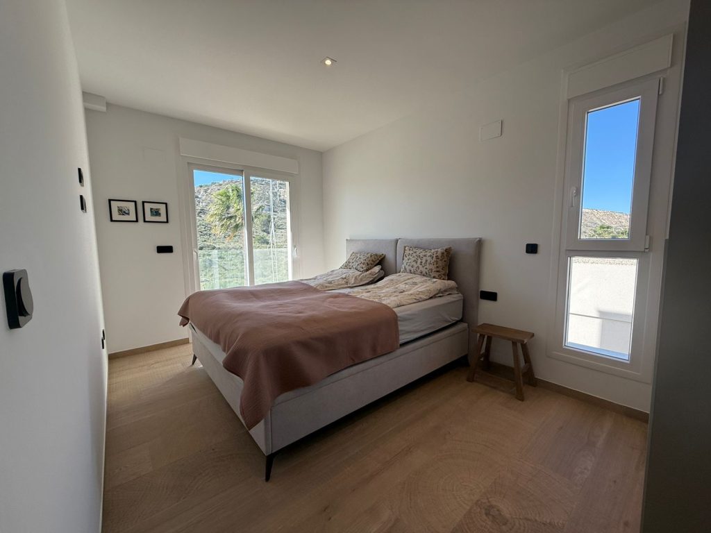 Hjónaherbergið er með hjónarúmi, fataskáp, loftkælingu og innangengt er inná sér baðherbergi með sturtu. Gestaherbergi einnig með með hjónarúmi, fataskápum og loftkælingu.