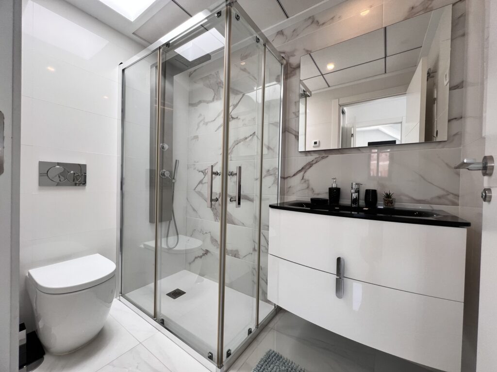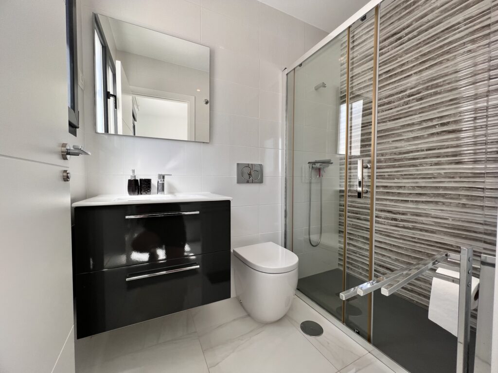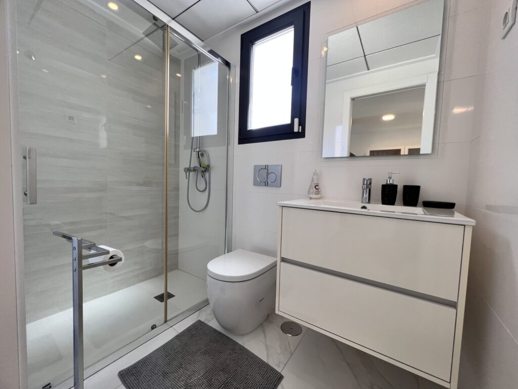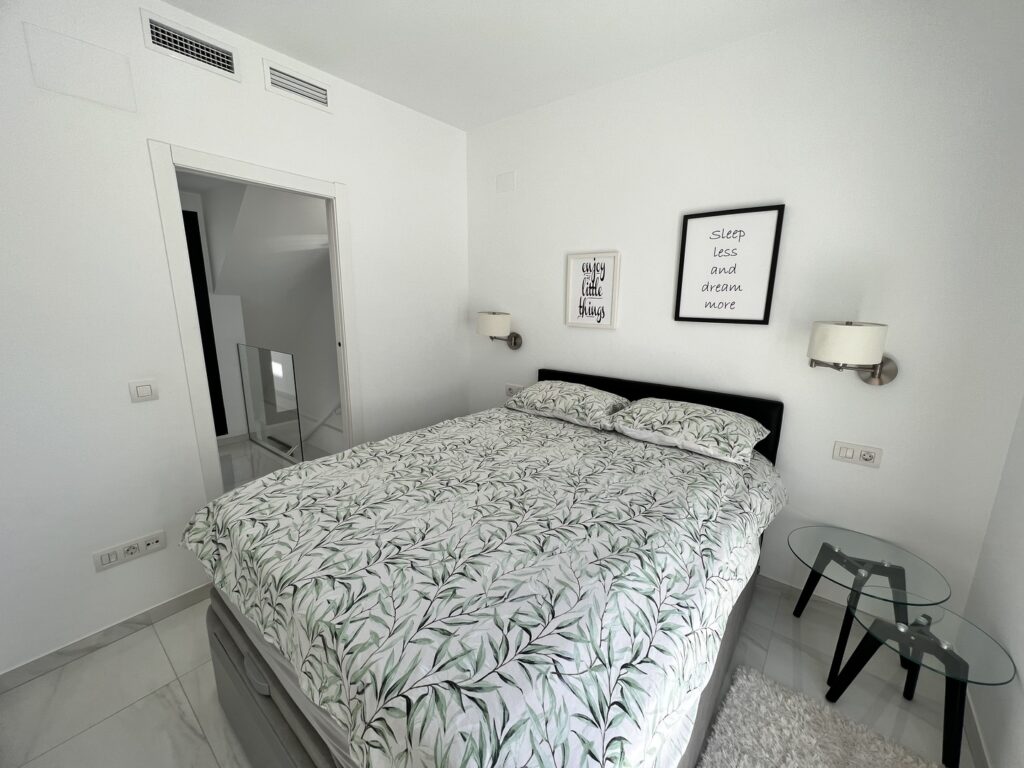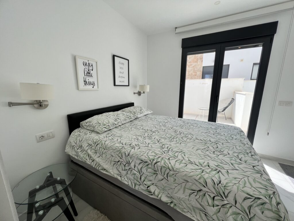 Glæsilegt endaraðhús í Villamartin hverfinu sem er í lokuðum kjarna með aðgengi að tveimur sundlaugum og er önnur þeirra upphituð. Allur frágangur þessar eignar er til fyrirmyndar með upphituð gólf á baðherbergjum, rafmagnsgardínur og loftkælingu sem hitar líka loftið. Á jarðhæð er stórt og flott eldhús með öllu tilheyrandi til matargerðar, einnig er flott kaffibaunavél, klakavél og stór drykkja kælir. Opið til stofu og borðstofu. Mjög stór garður er við húsið og þar er sól allan daginn með vönduðum úthúsgögn og Weber rafmagnsgrilli, einnig eru rúmgóðar þaksvalir.