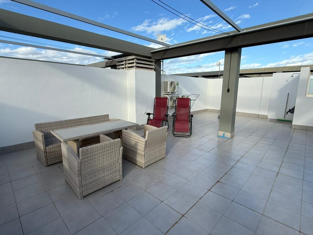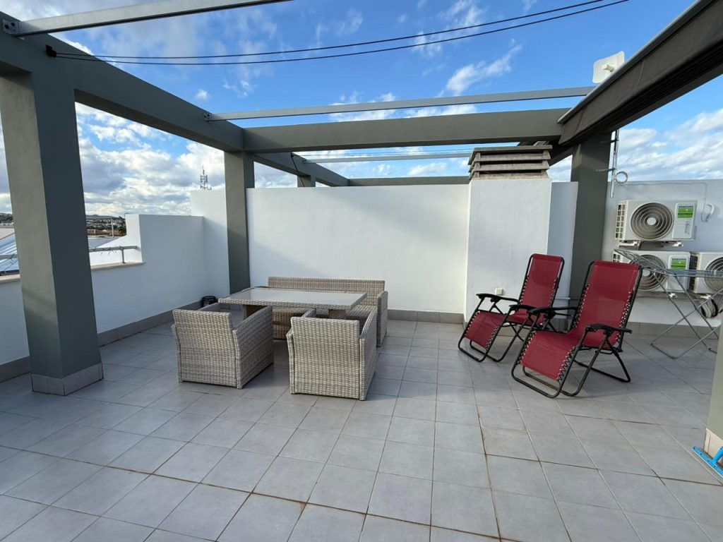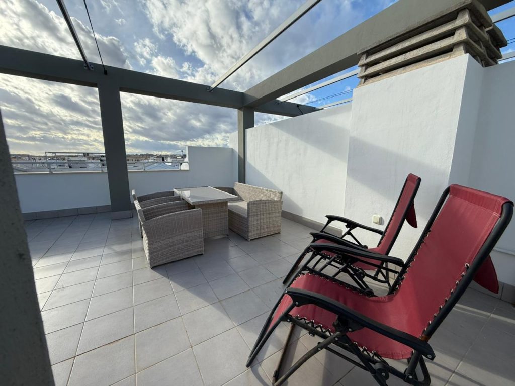 Efri sérhæð með 60 fm einkaþaksvölum og frábæru útsýni í Las Mimosas hverfinu. Aðgengi er að stórum 60 fm. prívat þaksvölum með gasgrilli, sturtu, pergólu og útihúsgögnum. Íbúðin er staðsett í lokuðum kjarna með sameiginlegri sundlaug og leiktækjum, rennibraut, rólum, boccia, körfubolta, útisalerni og fleira. Einungis eru nokkrar mínútur að rölta á sundlaugarbar þar sem ýmis dagskrá er á daginn og kvöldin, minigolf og fl. Veitingastaðir, barir og matvöruverslanir eru í nágrenninu og rétt um fimm mínútna keyrsla er í La Zenia Boulevard verslunarmiðstöðina. Fjöldi golfvalla í næsta nágrenni.