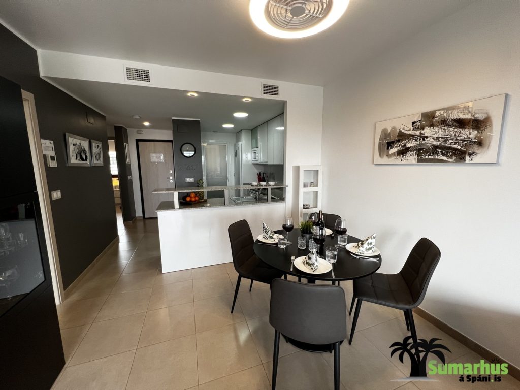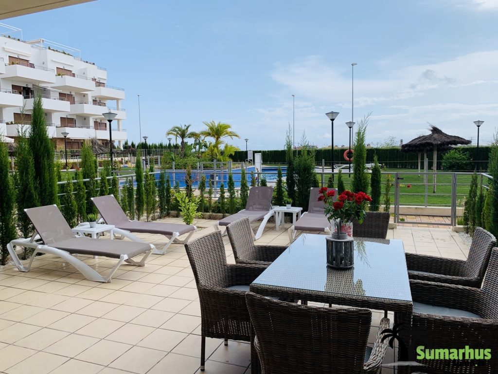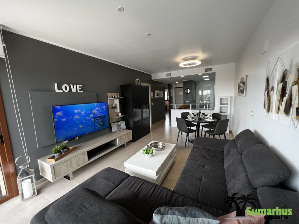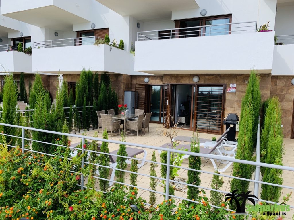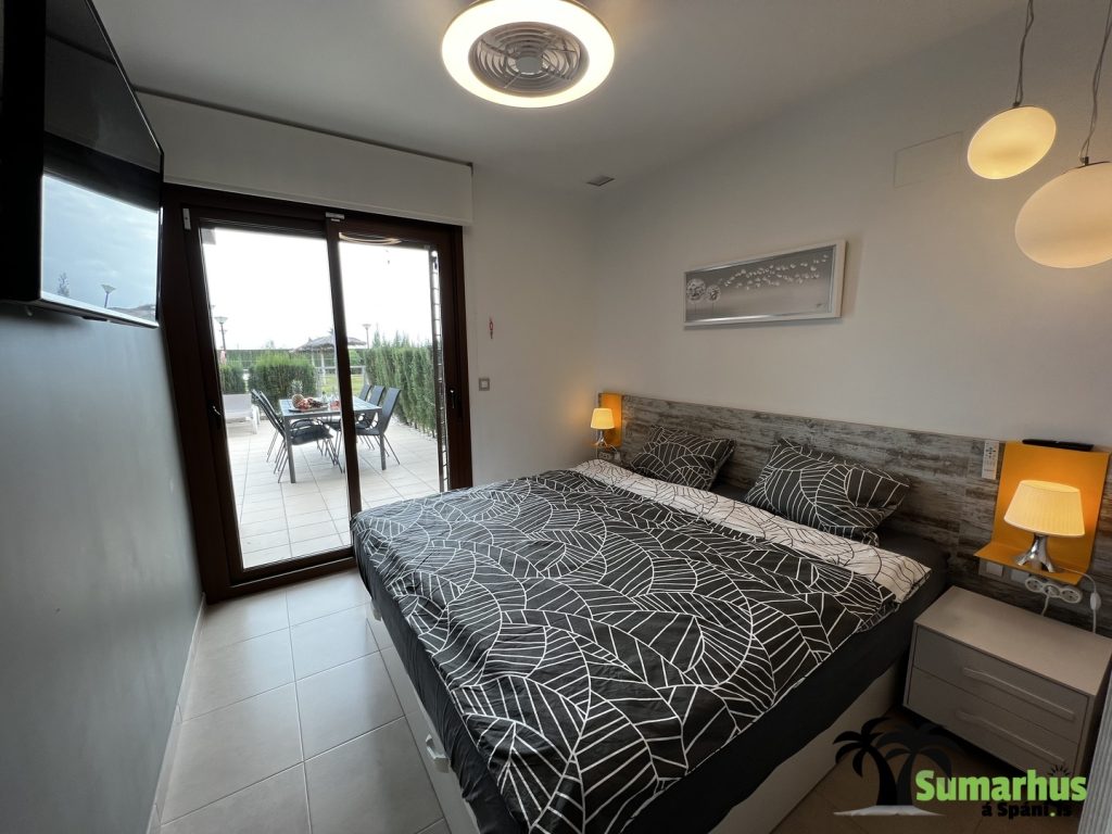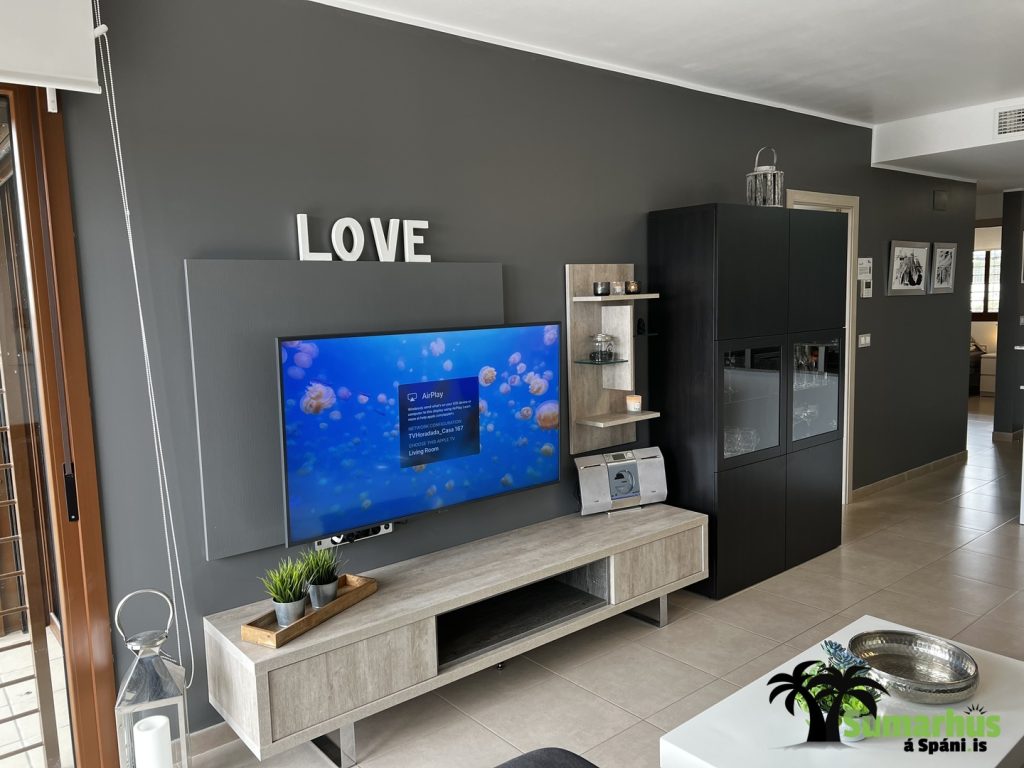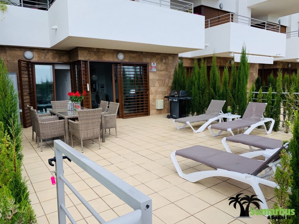 Íbúðin er á jarðhæð í glænýjum íbúðarkjarna í Lomas de Cabo Roig hverfinu og er mjög vel búin, WiFi, gasgrill, loftkæling og allt til alls. Rúmgóðar verandir eru fyrir framan og aftan íbúðina. Þrír fallegir sundlaugargarðar eru inná milli húsana og hafa gestir aðgang að þeim öllum, hverfið er mjög rólegt og gott. Veitingastaðir eru í göngufæri og stutt að skreppa á ströndina, á fimmtudagsmarkaðinn, í La Zenia mallið og niður á göngugötuna í Cabo Roig.