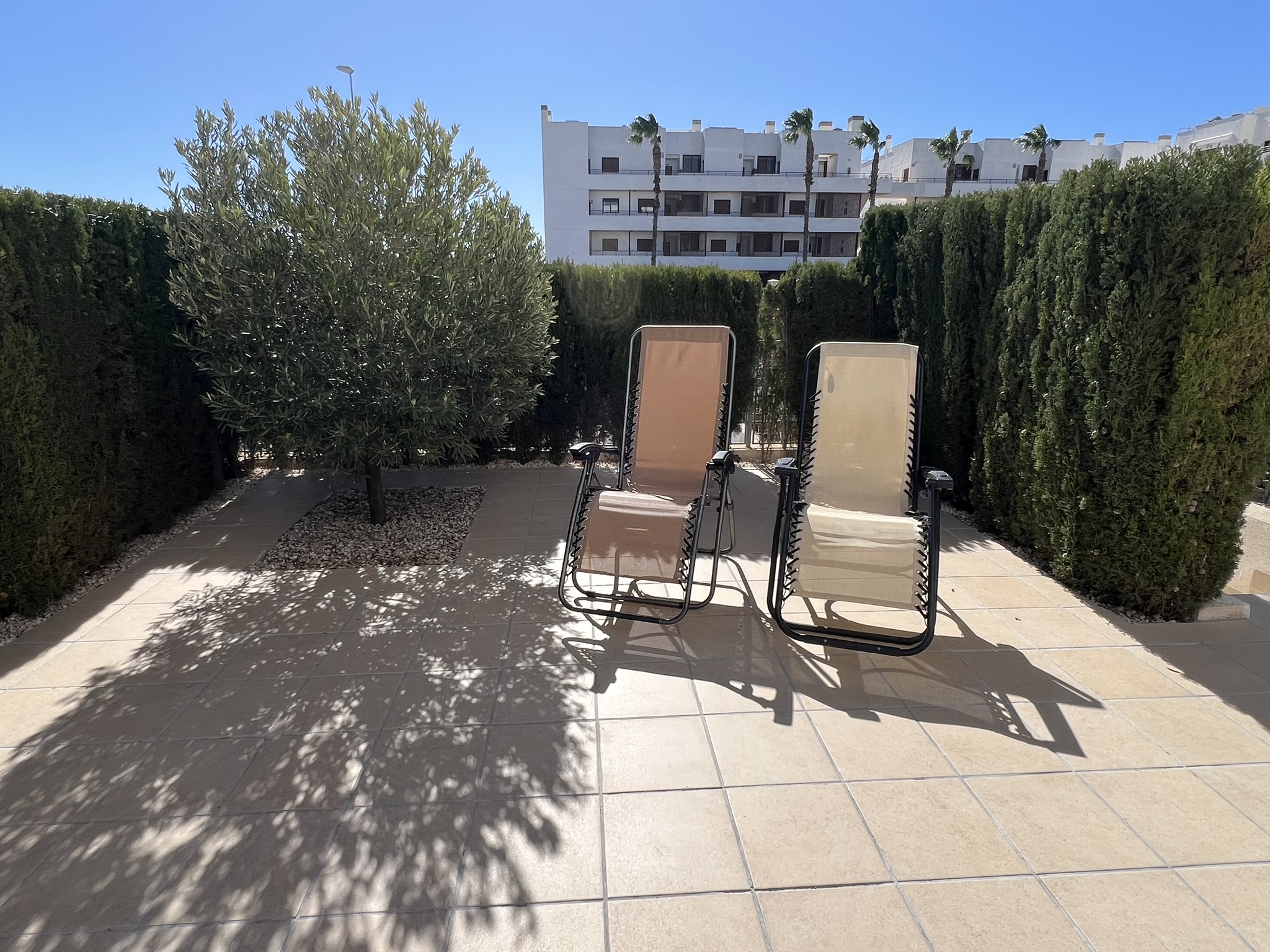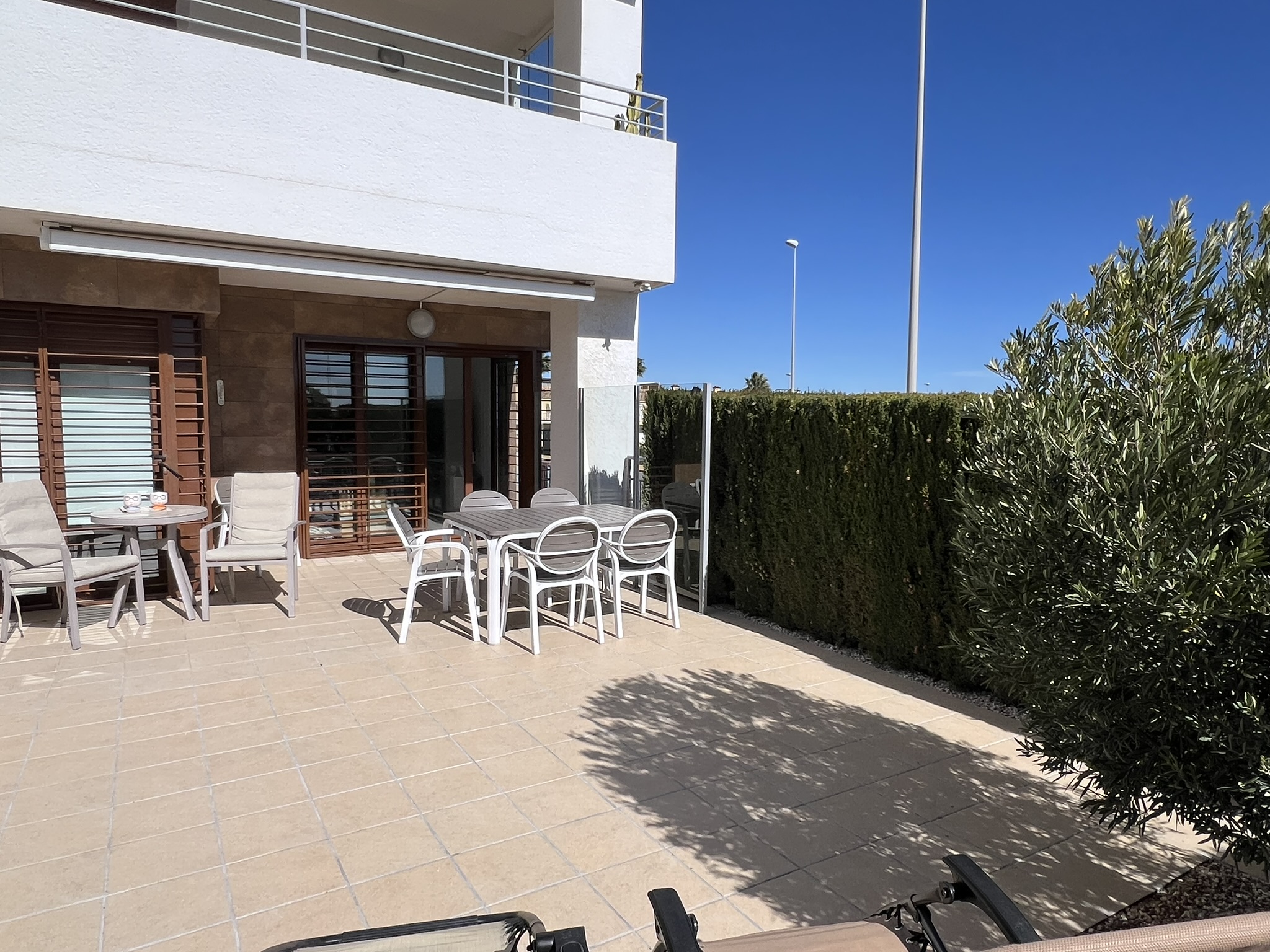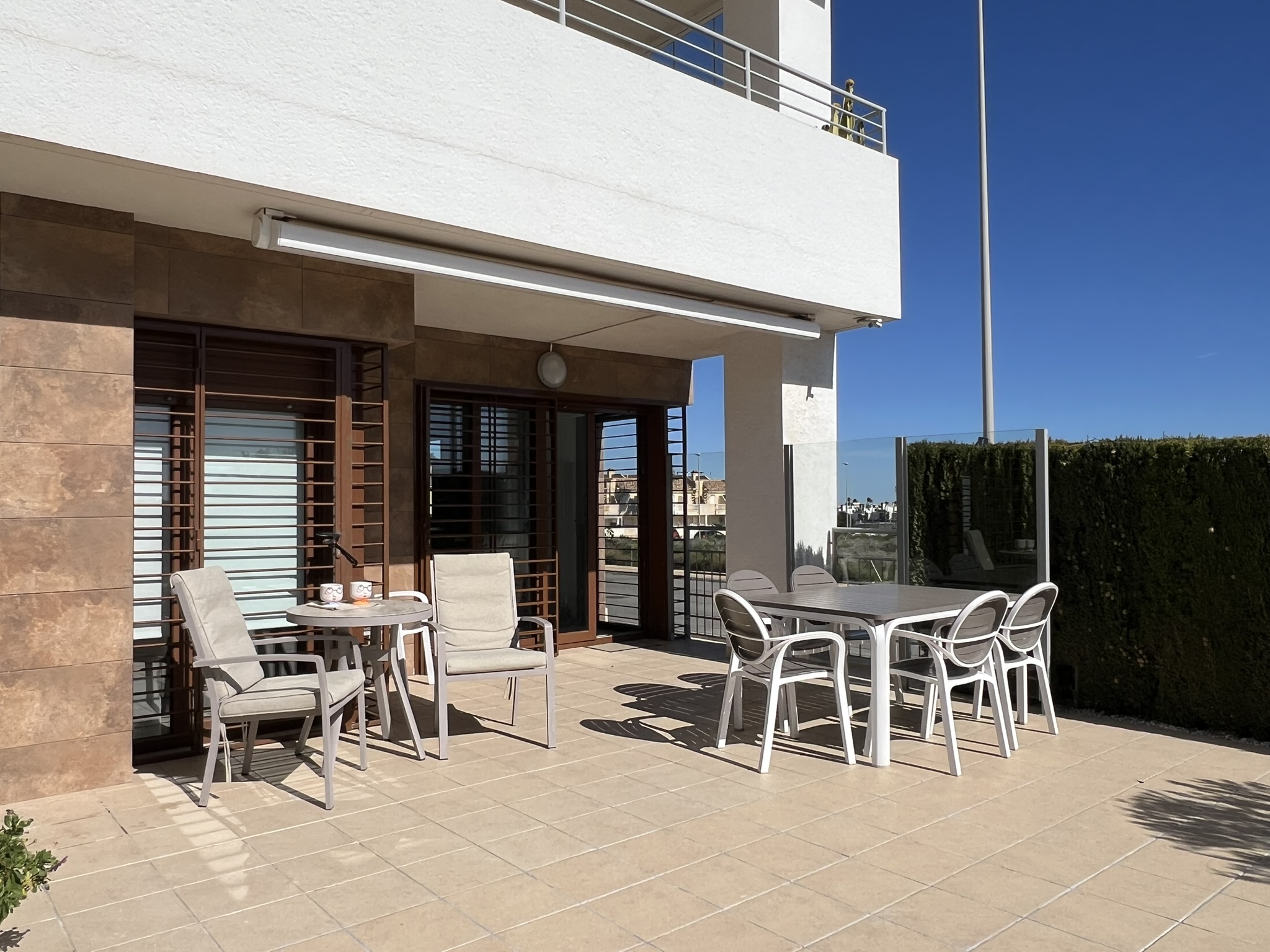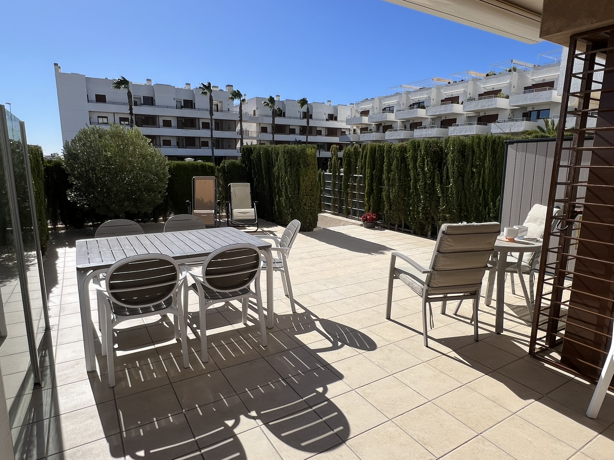 Íbúðin er á jarðhæð með góðu útisvæði beggja vegna íbúðar í Lomas de Cabo Roig hverfinu og er mjög vel búin. Þrír fallegir garðar eru inná milli húsana með sundlaugum, heitum potti, leiksvæði fyrir börnin, líkamsræktartækjum og hafa gestir aðgang að þeim öllum. Hverfið er mjög rólegt og gott, veitingastaðir og matvörubúð eru í göngufæri og stutt að skreppa á ströndina, á fimmtudagsmarkaðinn, í La Zenia mallið og niður á göngugötuna í Cabo Roig. Einnig eru margir golfvellir stutt frá hverfinu td. Campoamor, Villamartin, Las Colinas og Las Ramblas.