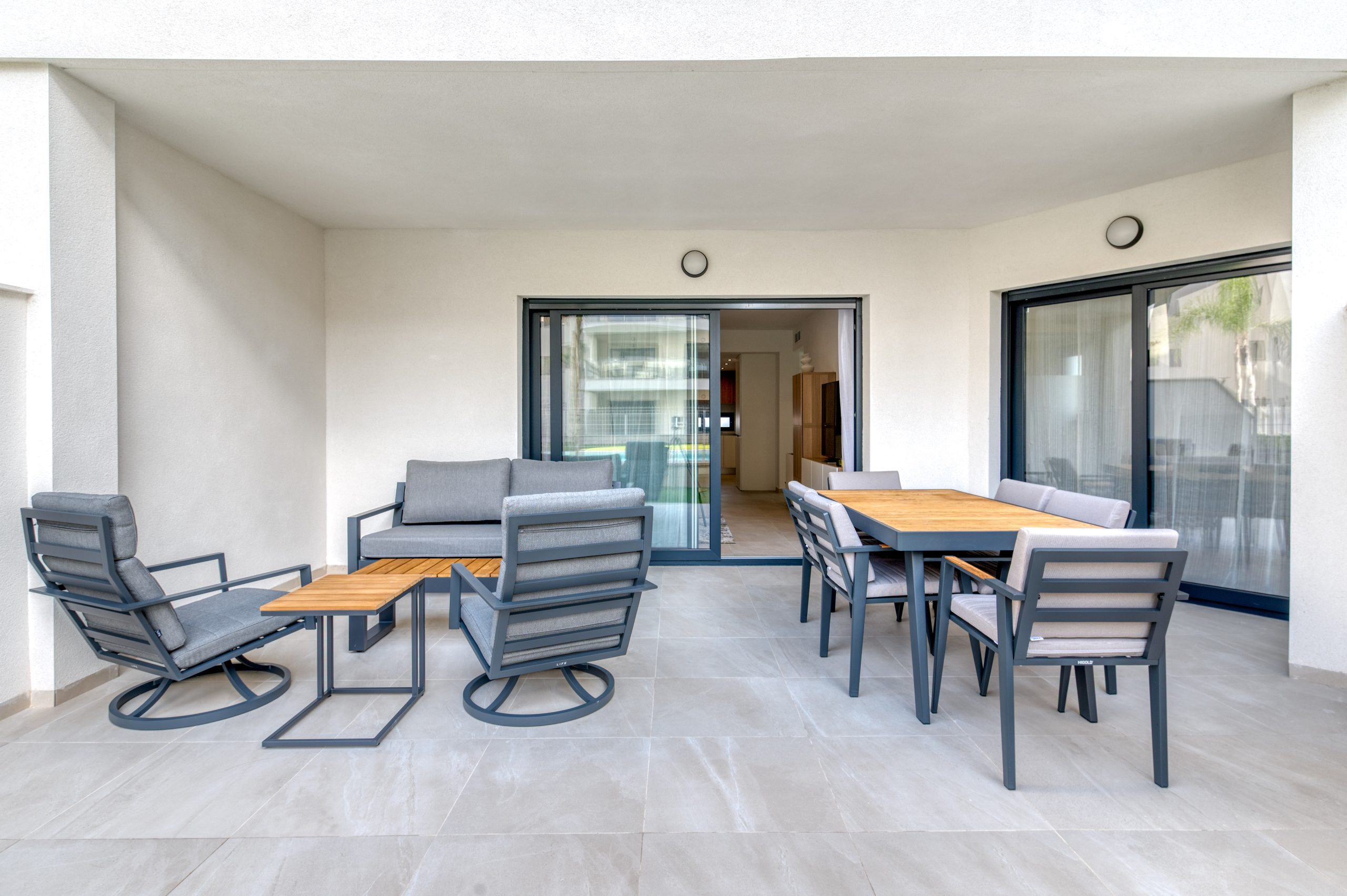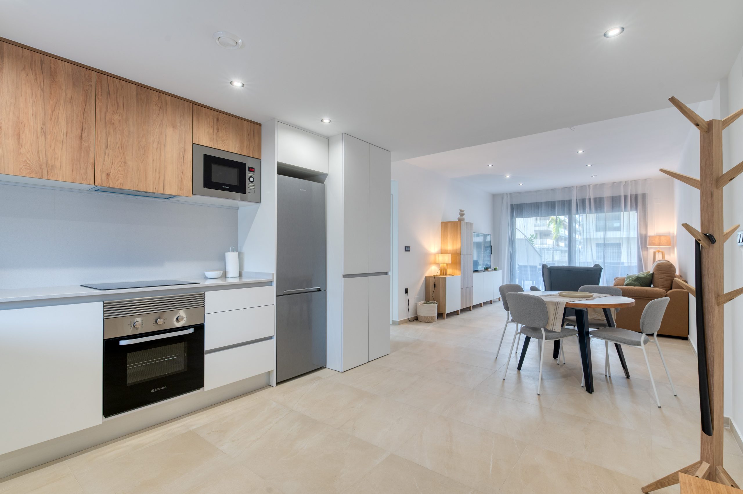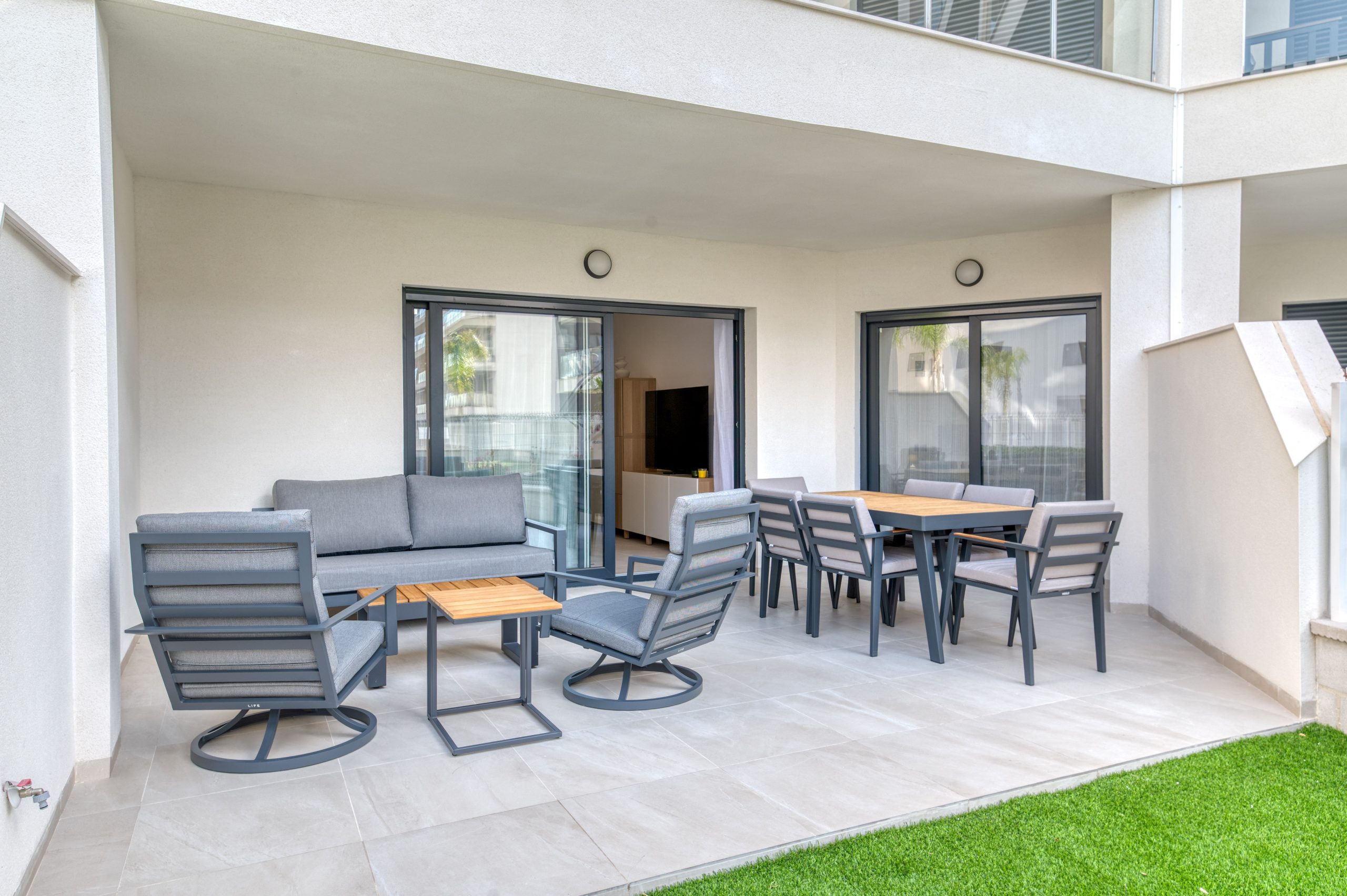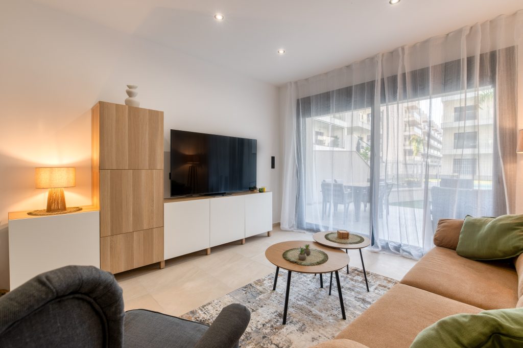 Falleg og björt íbúð á frábærum stað með útgengi út á verönd með borði, stólum og sófasetti. Í stofunni er sófi, hægindastóll og snjallsjónvarp, WiFi, loftkæling og fallegt borðstofuborð með stólum. Eldhúsið er bjart og vel búið með öllum helstu áhöldum til matargerðar. Íbúðinni fylgir einkabílastæði í bílakjallara. Við íbúðina er góður sameiginlegur sundlaugagarður með sundlaug, barnalaug og góðri aðstöðu til sólbaða.