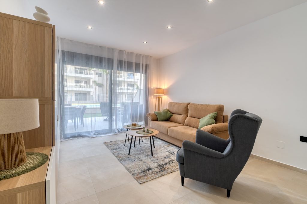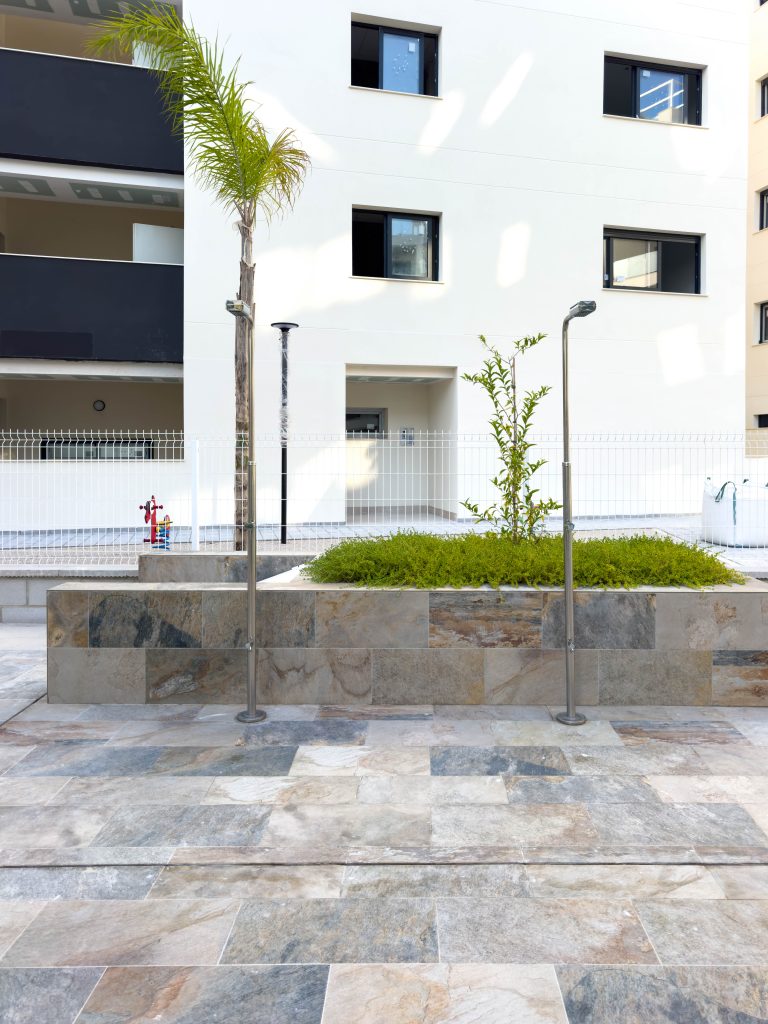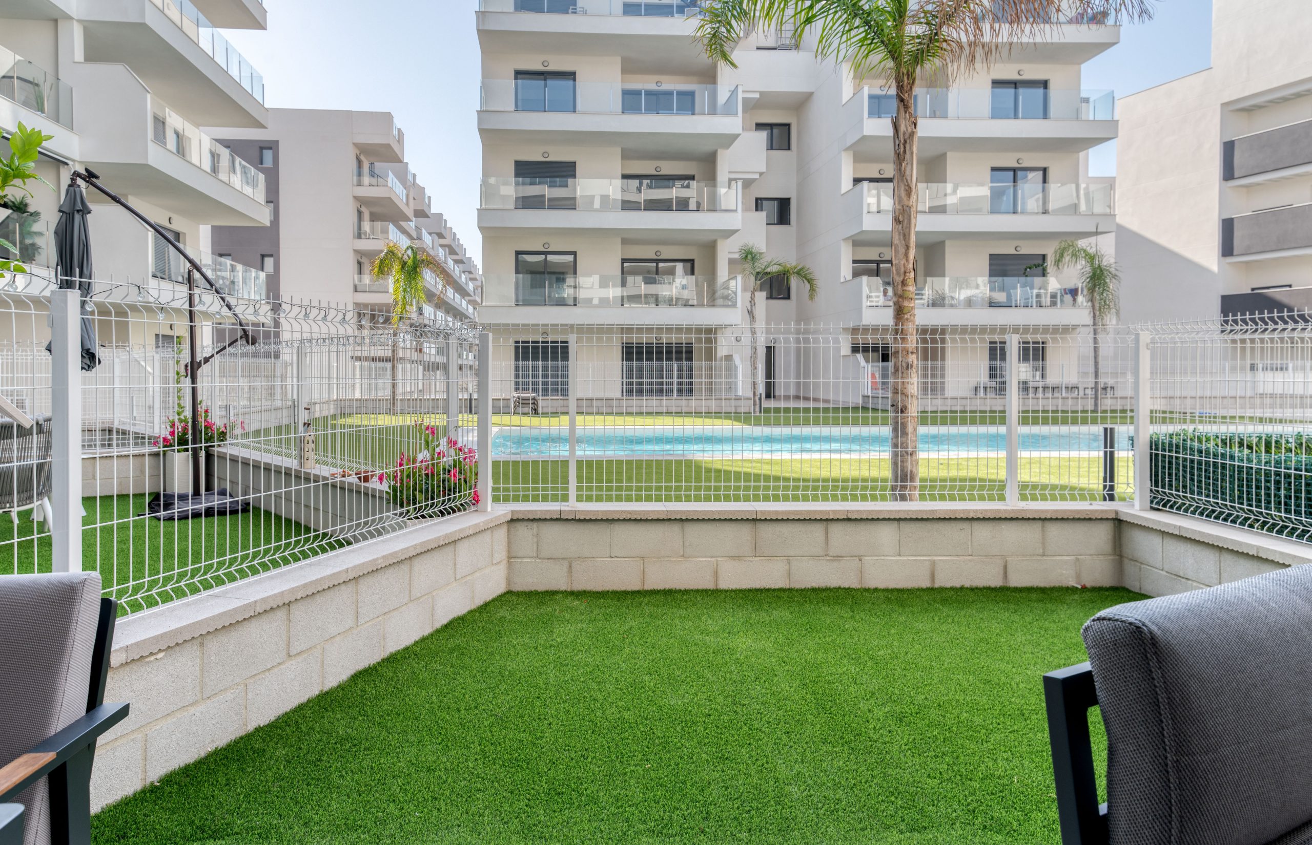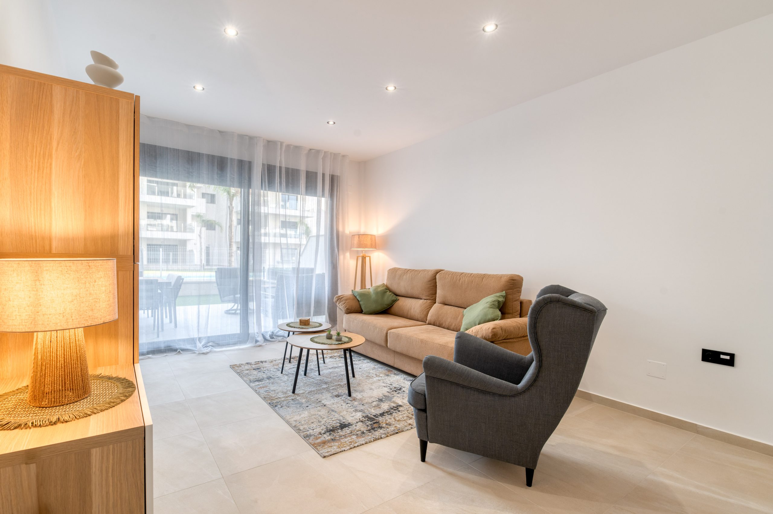 Falleg og björt íbúð á frábærum stað með útgengi út á verönd með borði, stólum og sófasetti. Í stofunni er sófi, hægindastóll og snjallsjónvarp, WiFi, loftkæling og fallegt borðstofuborð með stólum. Eldhúsið er bjart og vel búið með öllum helstu áhöldum til matargerðar. Íbúðinni fylgir einkabílastæði í bílakjallara. Við íbúðina er góður sameiginlegur sundlaugagarður með sundlaug, barnalaug og góðri aðstöðu til sólbaða.